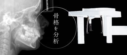セファロ撮影とは、頭部を一定の規格で撮影することのできるX線撮影方法です。顎の形や上下の顎のズレ、歯の傾斜角、口元のバランスなどを把握でき、より精度の高い矯正歯科治療に役立ちます。